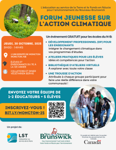 30 octobre: Le forum jeunesse de L’éducation au service de la Terre (LST) destiné aux jeunes de 7e à la 12e année avec accompagnateurs.